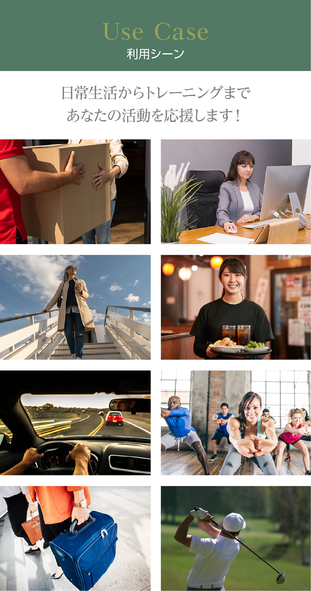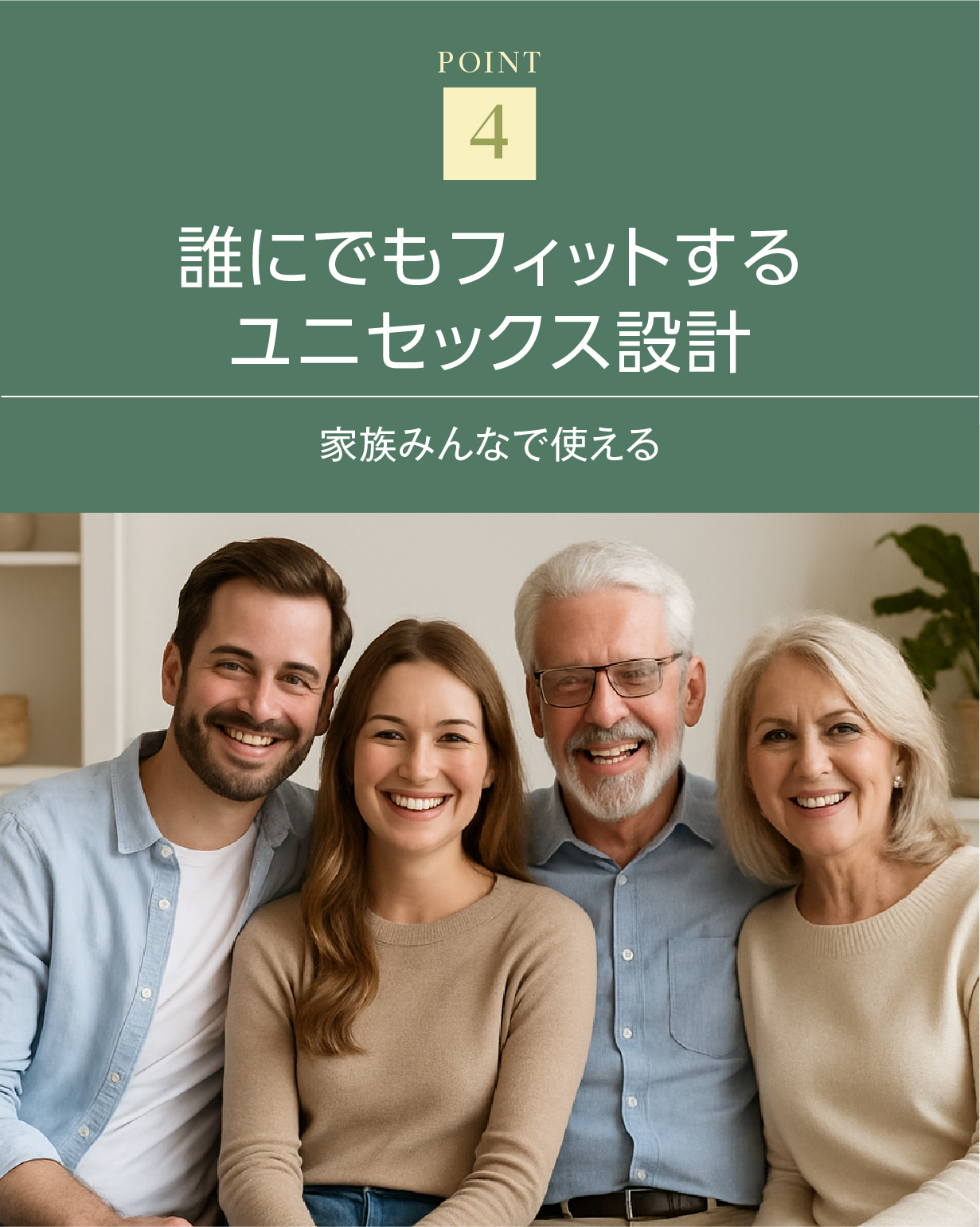 調整幅が広く、自分に合った締め付け感で装着できるため、快適さとサポート感を両立。シンプルなデザインで家族での共有やギフトにも最適。